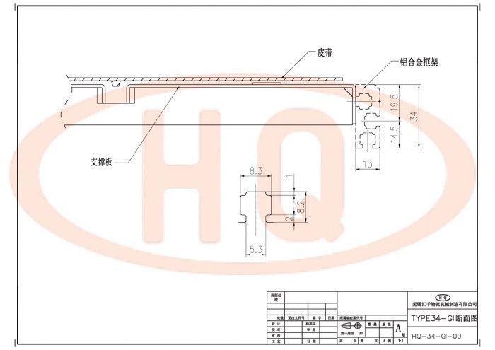 使用34mm鋁合金型材支架,皮帶傳送、驅動。使用糾偏皮帶(皮帶底面帶導條),防止皮帶運行時出現蛇行或跑偏,能保證輸送穩定。特別適合橫向移栽的場所。驅動部為鑄鋁一體成型,主動輪和從動輪為鋁同步輪,皮帶為樹脂同步帶,具有精度高、靜音性及耐久性,無油脂污染。