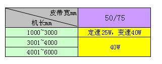 標(biāo)準(zhǔn)設(shè)定電機(jī)功率表