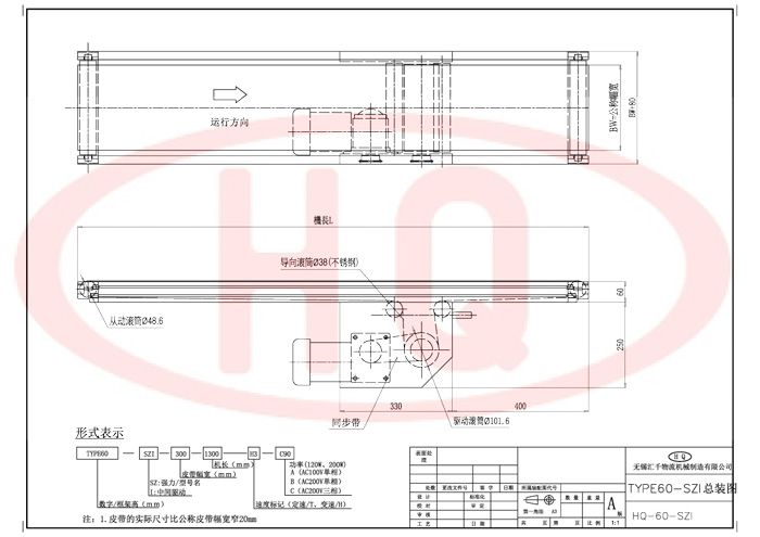 使用60mm鋁合金型材支架,皮帶傳送、大馬力電機驅動,直線輸送。
