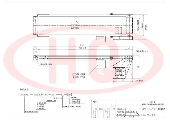 使用60mm鋁合金型材支架,皮帶傳送、頭部驅動,直線輸送.