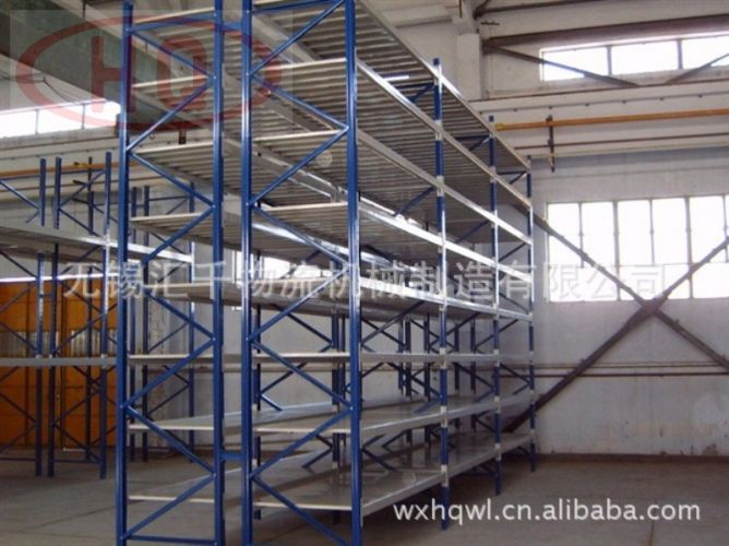 擱板式貨架通常均為人工存取貨方式,組裝式結(jié)構(gòu),層間距為50mm均勻可調(diào),貨物也常為散件或不是很重的已包裝物品(便于人工存?。?,貨架高度通常在2.5m以下,否則人工難以觸及(如輔以登高車則可設(shè)置在3m左右)。單元貨架跨度(即長度)不宜過長,單元貨架深度(即寬度)不宜過深,按其單元貨架每層的載重量可分為輕、中、重型擱板式貨架,層板主要為鋼層板、木層板兩種。擱板式貨架適合存放零散、輕便的貨物,可以改裝成閣樓式貨架。為了滿足物品更多的存放需求,擱板式貨架還可以配置重梁的支撐(柱),可設(shè)計(jì)成多層樓層(通常2-3層),配有樓梯、扶手和貨物提升電梯等,這就演變成了閣樓式貨架,特別適用于汽配、電子器件的等企業(yè)系列產(chǎn)品的分類保存,承載不大于500kg/㎡。