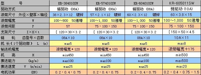 KR-SW系列驅(qū)動(dòng)輸送機(jī)使用雙排鏈條驅(qū)動(dòng),相鄰滾筒之間獨(dú)立鏈條連動(dòng),傳動(dòng)平穩(wěn)、勻速,適用于中重量搬運(yùn)場(chǎng)合。