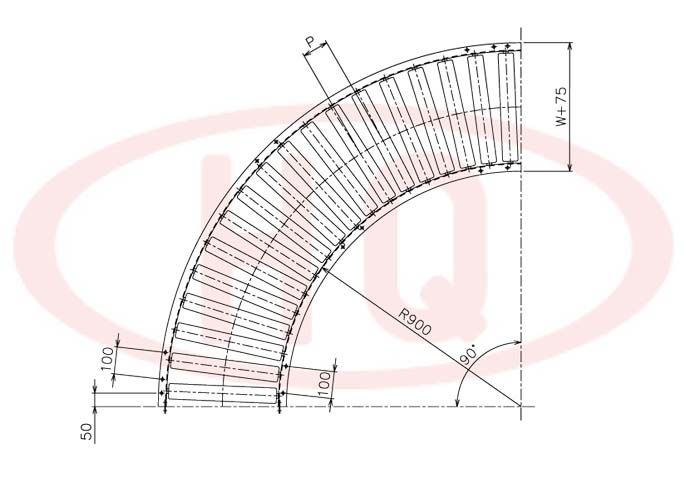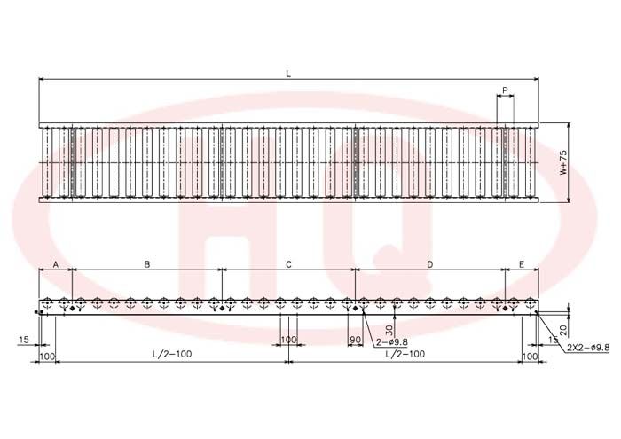 | 型 號 | 滾筒外徑(φ)×壁厚(t) 軸承 | 軸外徑(φ)×壁厚(t) 加工 | 支架形狀I(lǐng)×K×t | 機(jī) 長 L | 滾筒幅寬 W | 滾筒間距 P | 轉(zhuǎn)彎半徑 R | ||||||