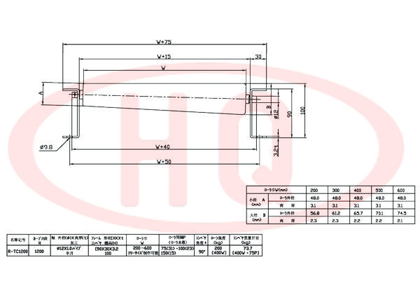 | R-TC1,200 | 小徑 A (mm) | 滾 筒 外 徑 | 48.0 | 48.0 | 48.0 | 48.0 | 48.0 | |
