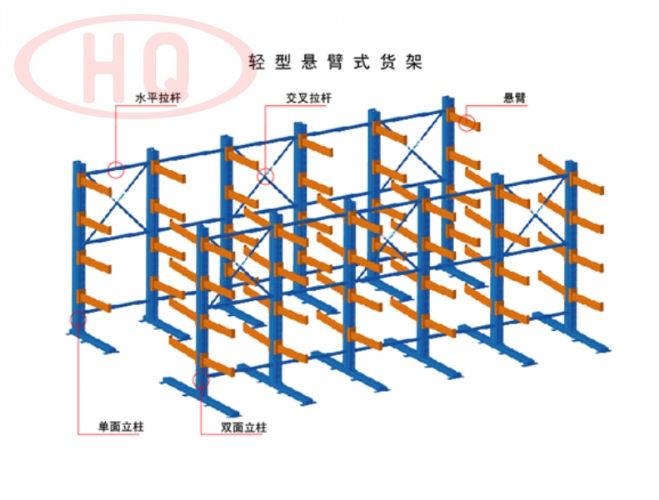 貨架是在傳統(tǒng)式貨架支柱上裝設(shè)外懸臂而成,是一種長形物專用的